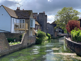 From here, I walked down St. Peter’s Lane to a lookout area adjacent to Pound Lane. The lookout area overlooks the River Stow and on the opposite bank of the river, the site of a huge mill. The mill was designed by John Smeaton, architect of the Eddystone Lighthouse near Plymouth. My son will be happy I fit a lighthouse into this tour of Canterbury. The mill was largely destroyed in a fire in the 1930s but much of the equipment and the waterway survived. This lookout is a great place to sit and read…which I know because I took about an hour to do so.